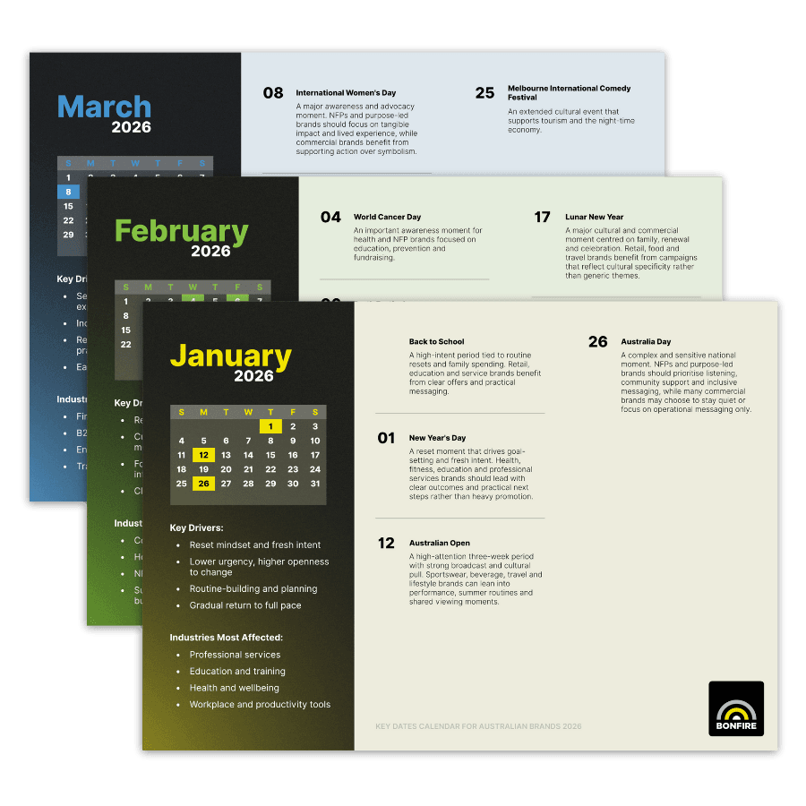 Planning good marketing rarely comes down to how quickly you can react. It comes from understanding when attention shifts, when demand concentrates, and when restraint matters just as much as action. That’s exactly why we’ve built our Key Dates Calendar for Australian Brands.