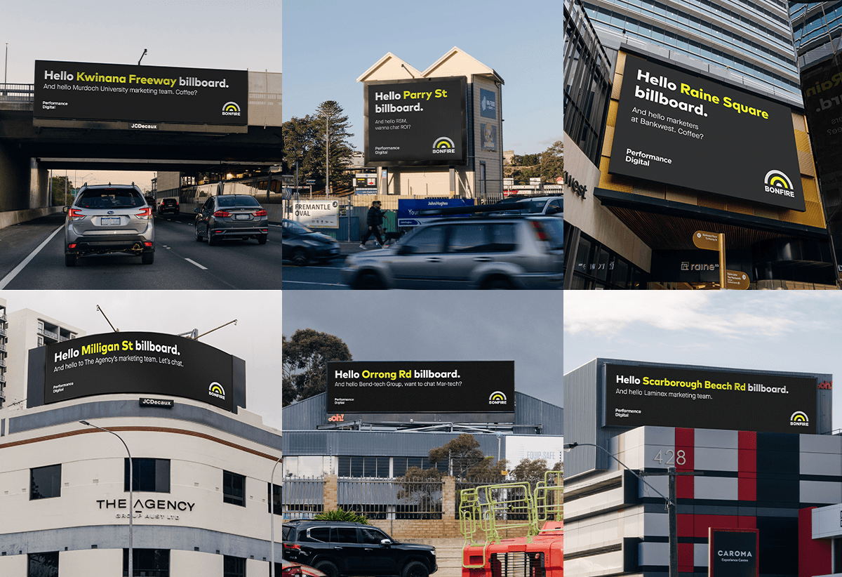 Instead of a single static site, Bonfire has launched a new digital out-of-home campaign with placements near key potential clients such as Bankwest, Murdoch University and other major WA-based brands.
